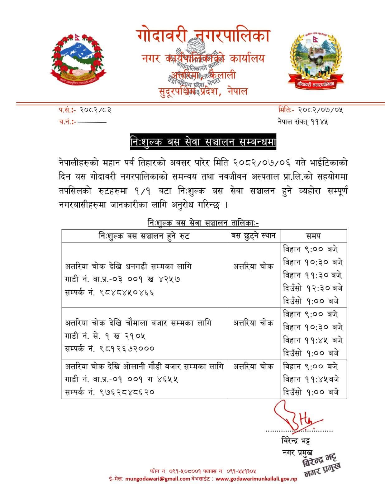 कैलालीको गोदावरीमा भोलि नि:शुल्क बस सेवा