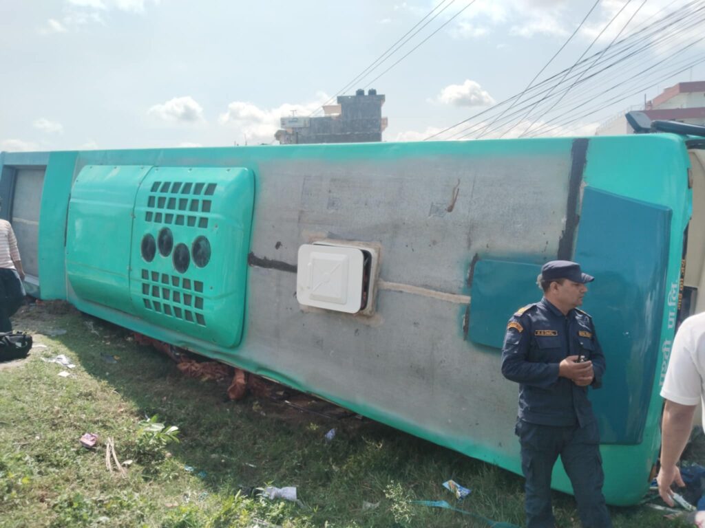 धनगढीबाट काठमाडौँ जाँदै गरेको यात्रुबाहक बस कपिलवस्तुमा दुर्घटना, ३६ जना घाइते